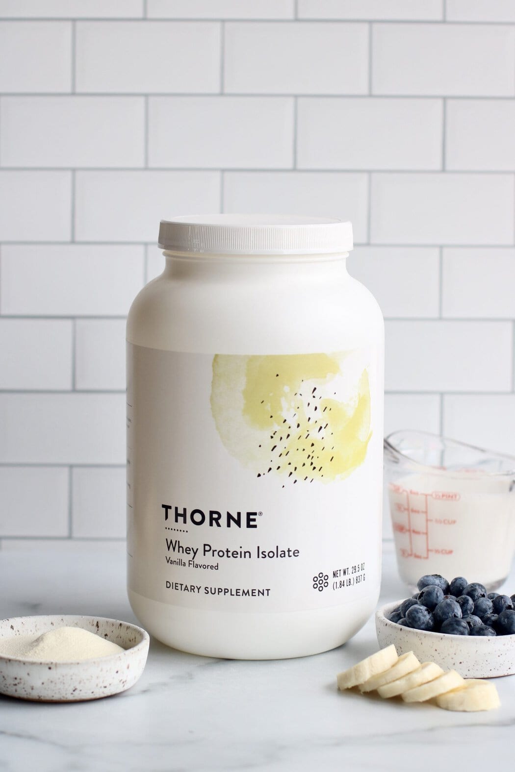 Jessica used Ascent whey for years as her go-to post-workout recovery protein after CrossFit workouts and heavy lifting sessions to help build muscle and recover faster. This powder blends nicely and has great flavor with a very subtle stevia taste and like all of the protein powders we recommend, it contains no banned substances. It blends well with just water in a shaker bottle so it’s an easy way to get that protein in on your way home from the gym to hit that window for optimal muscle protein synthesis (30-60 minutes post workout).
